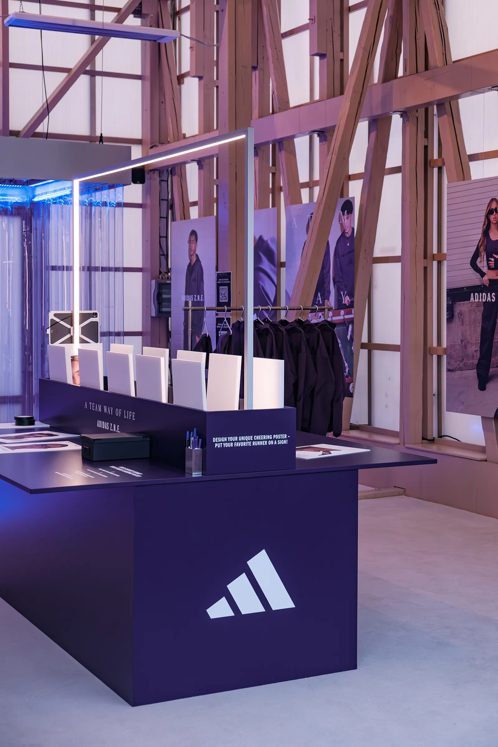 For the Berlin Marathon 2025, we transformed a training room at the adidas Sports Base Berlin into an interactive Brand Experience for the new adidas Z.N.E. collection for two days. Under the claim “A TEAM WAY OF LIFE,” a thoughtfully designed spatial concept brought the team spirit of the adidas Running Community to life – a place to recharge, connect, and celebrate together off the running track.