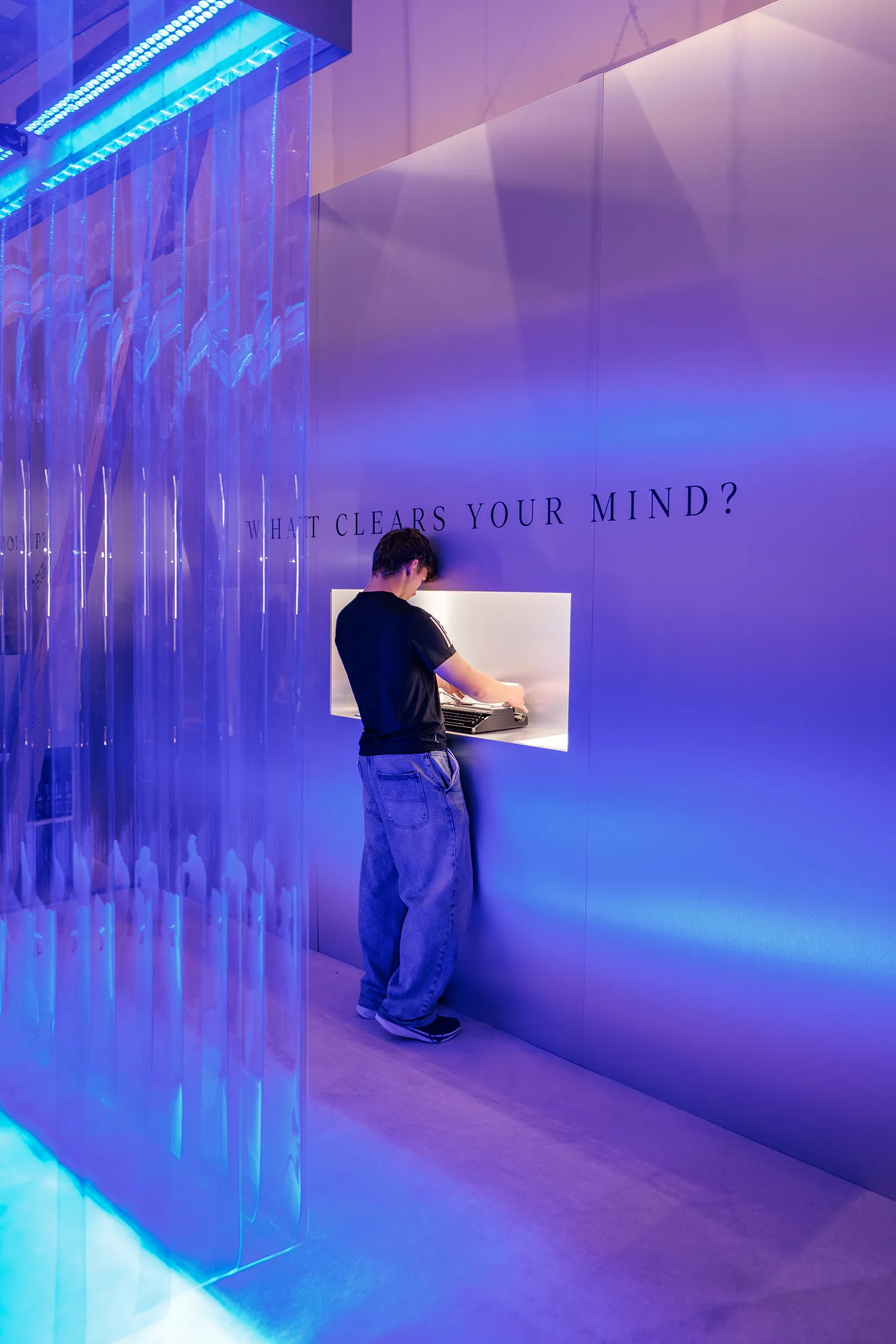 We reinterpreted the formerly functional gym spatially: A metallic messaging wall covered the equipment wall and invited visitors to leave personal messages. On an original Silver-Reed typewriter, creative thoughts were shared on “What clears your mind?” while answers to “What cheers you up?” were written directly on the wall.